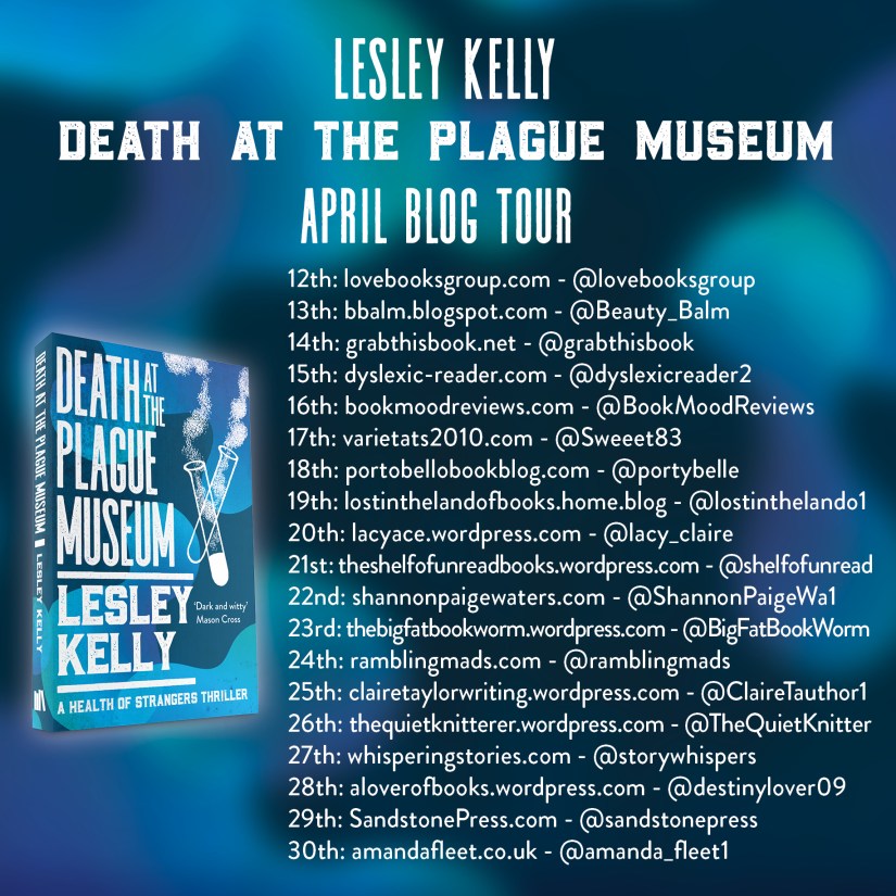 Today I am hosting a stop on the blog tour for Lesley Kelly’s Death at the Plague Museum. And if that title doesn’t intrigue you, I don’t know what will.