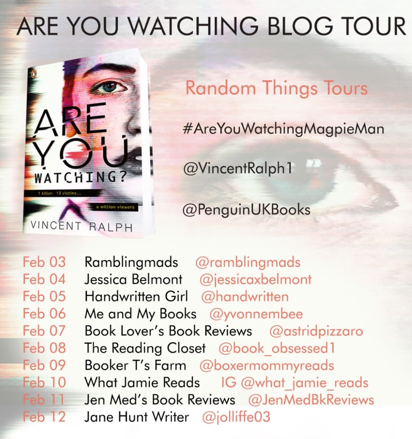 Ten years ago, Jess’s mother was murdered by the Magpie Man. She was the first of his victims but not the last. Now Jess is the star of a YouTube reality series and she’s using it to catch the killer once and for all. The whole world is watching her every move. And so is the Magpie Man.