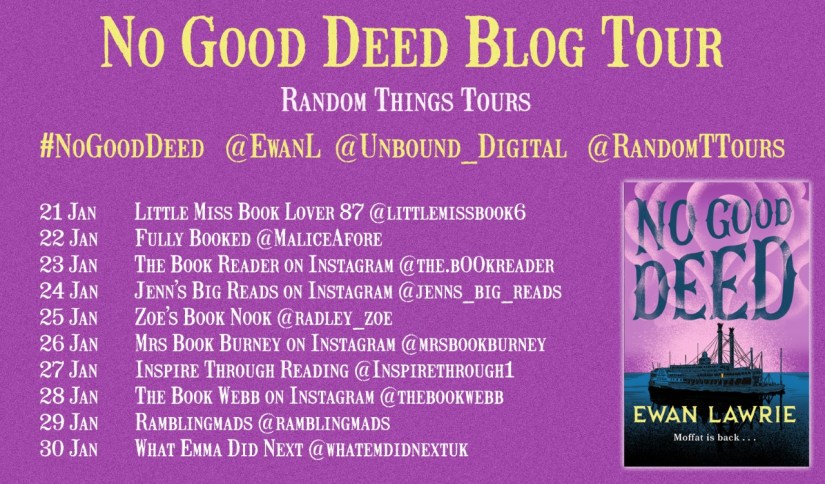 The scheme is complex and involves two riverboats and hiding both the silver and slaves from the authorities and a traitor in the ranks. Moffat learns more of the truth behind his origins, his past and what happened at Gibbous House. Moffat encounters the redoubtable and attractive Miss Pardoner – a woman seemingly unaffected by the passage of time – once again.