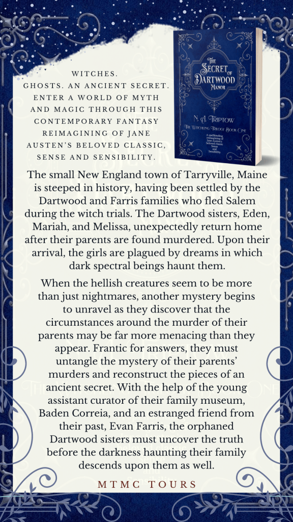 The small New England town of Tarryville, Maine is steeped in history, having been settled by the Dartwood and Farris families who fled Salem during the witch trials. The Dartwood sisters, Eden, Mariah, and Melissa, unexpectedly return home after their parents are found murdered. Upon their arrival, the girls are plagued by dreams in which dark spectral beings haunt them. When the hellish creatures seem to be more than just nightmares, another mystery begins to unravel as they discover that the circumstances around the murder of their parents may be far more menacing than they appear. Frantic for answers, they must untangle the mystery of their parents’ murders and reconstruct the pieces of an ancient secret. With the help of the young assistant curator of their family museum, Baden Correia, and an estranged friend from their past, Evan Farris, the orphaned Dartwood sisters must uncover the truth before the darkness haunting their family descends upon them as well.