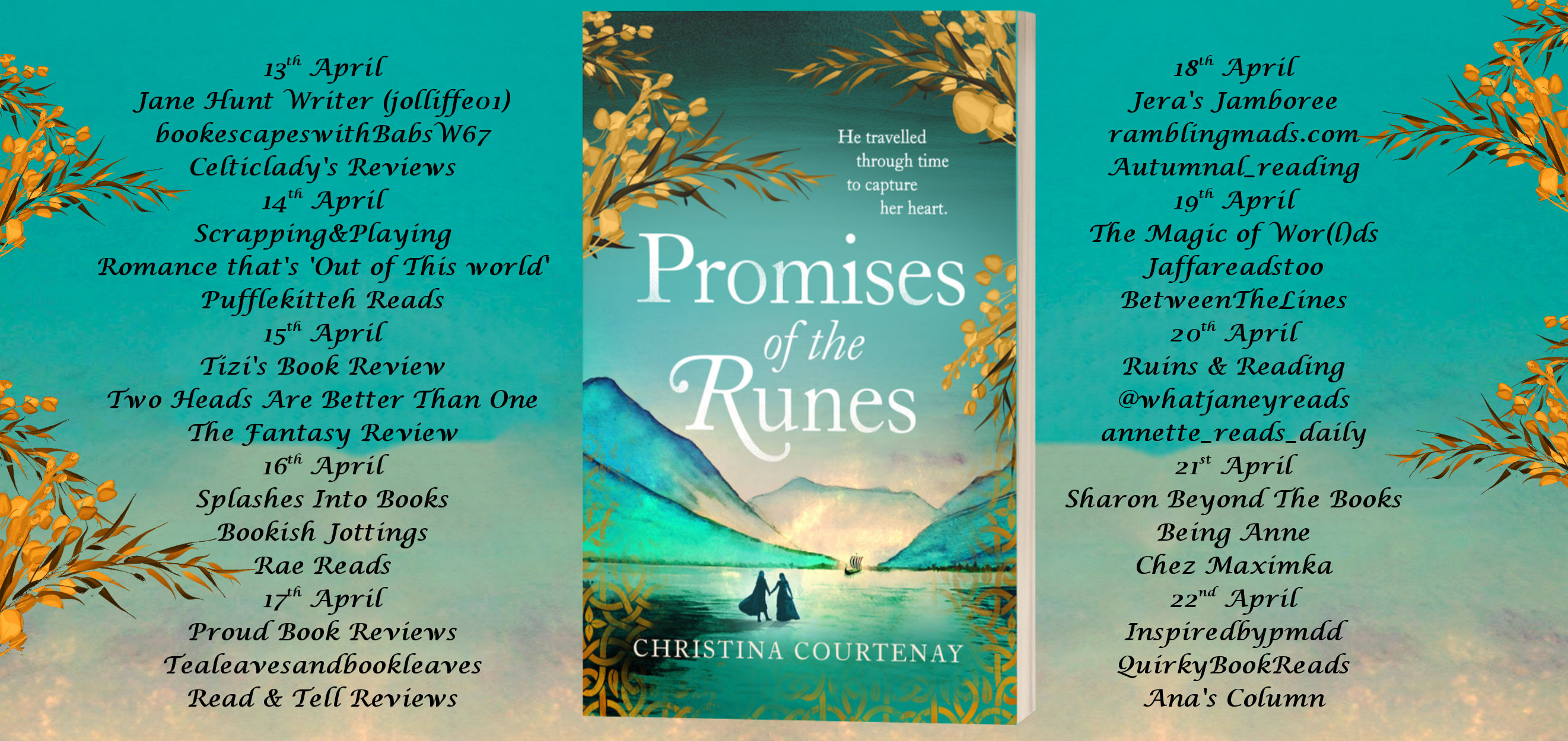 Christina Courtenay writes historical romance, time slip and time travel stories, and lives in Herefordshire (near the Welsh border) in the UK. Although born in England, she has a Swedish mother and was brought up in Sweden – hence her abiding interest in the Vikings. Christina is a former chairman of the UK’s Romantic Novelists’ Association and has won several awards, including the RoNA for Best Historical Romantic Novel twice with Highland Storms (2012) and The Gilded Fan (2014) and the RNA Fantasy Romantic Novel of the year 2021 with Echoes of the Runes. Promises of the Runes (time travel romance published by Headline Review 13th April 2023) is her latest novel.