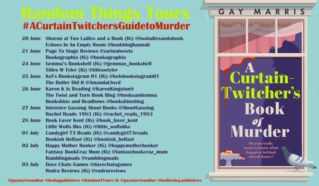 Set in London in 1968, A CURTAIN TWITCHER’S BOOK OF MURDER follows the lives of the inhabitants of a suburban London street. But this is no ordinary road.