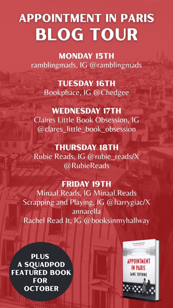 APPOINTMENT IN PARIS, the sequel to Jane Thynne’s acclaimed Midnight in Vienna, which received stunning reviews on its HB outing last year including from The Times (‘evocative, gripping and highly enjoyable’), Observer (‘gripping and surprising’), Financial Times (‘sharply drawn and very enjoyable’) and the Irish Independent (‘beautifully crafted historical thriller’). A finished copy is on its way to you.