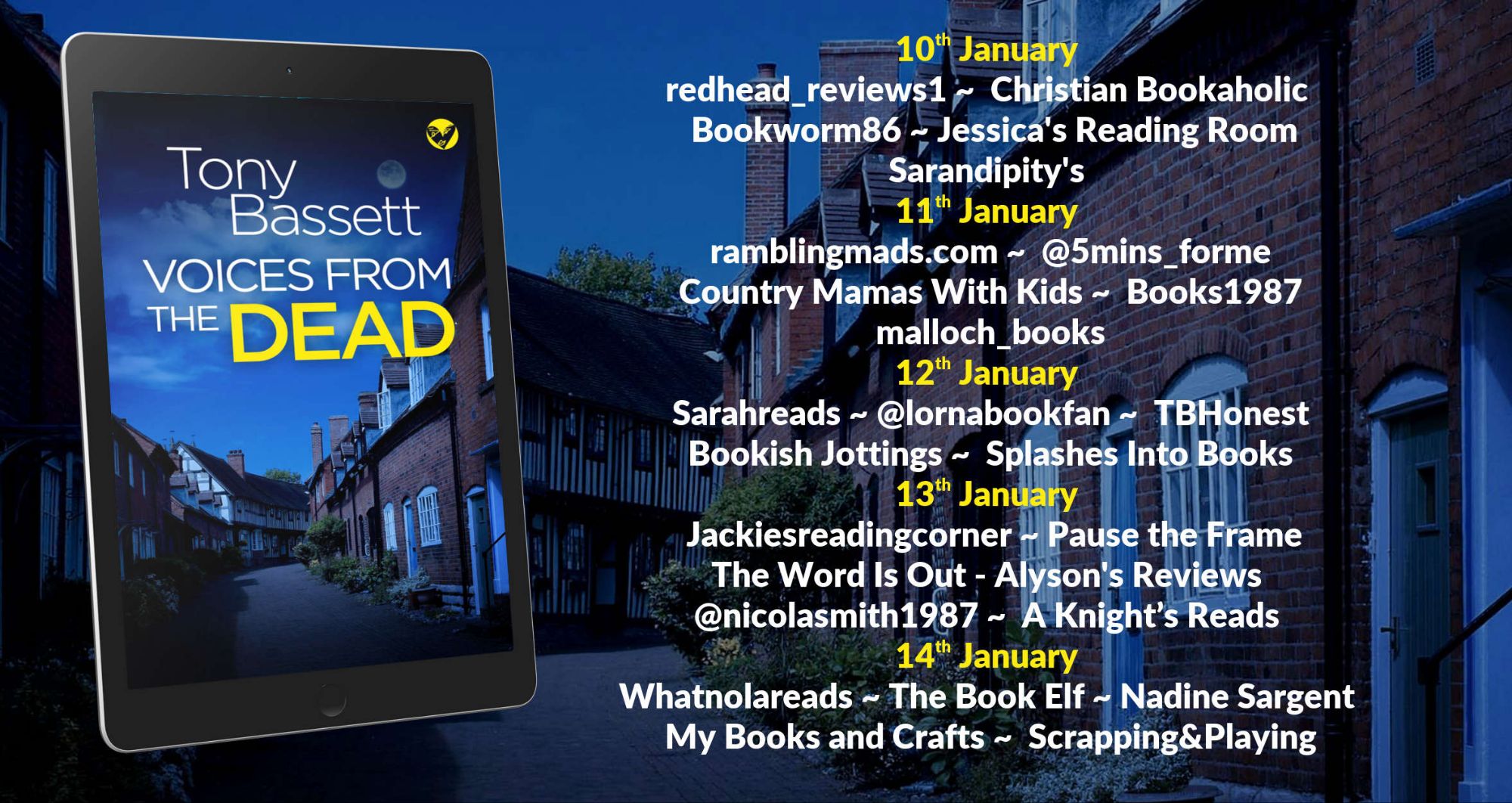 His latest novel, VOICES FROM THE DEAD (Book 8) begins in the picturesque Warwickshire town of Queensbridge where a retired nurse escapes to her hotel room from a rowdy birthday party, looking