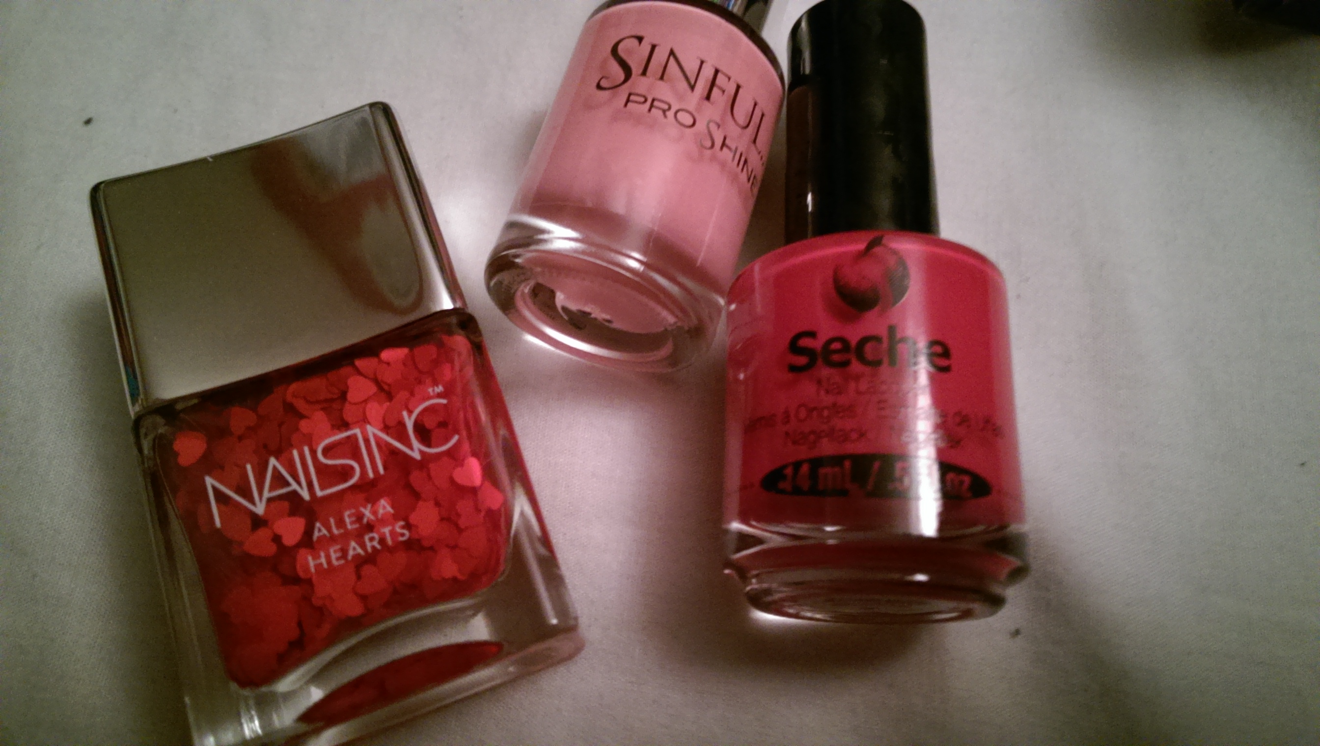 The Seche Rendezvous is better, but still unlikely to get used much, and the Nails Inc Alexa collection Hearts look very pretty but seem very determined to stay in their bottle with the brush coming out heart-less.