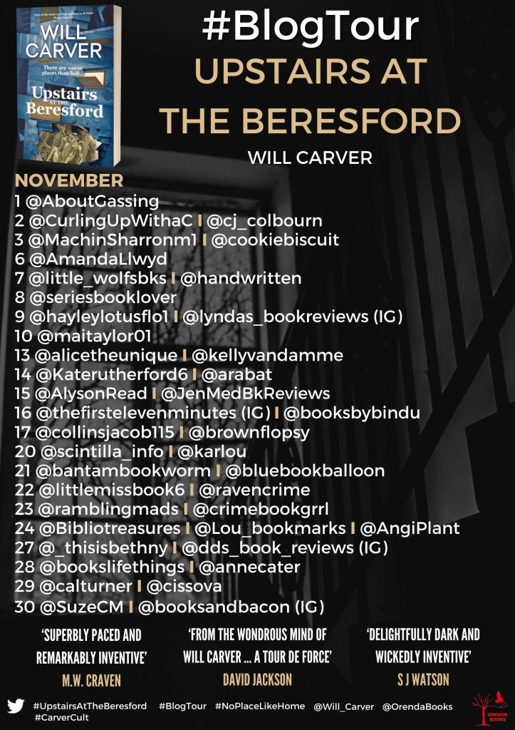 Nothing Important Happened Today was longlisted for both the Goldsboro Books Glass Bell Award 2020 and the Theakston’s Old Peculier Crime Novel of the Year Award. Hinton Hollow Death Trip was longlisted for the Guardian’s Not the Booker Prize, and was followed by the literary thrillers, The Beresford, Psychopaths Anonymous, The Daves Next Door, Suicide Thursday and Upstairs at the Beresford.
