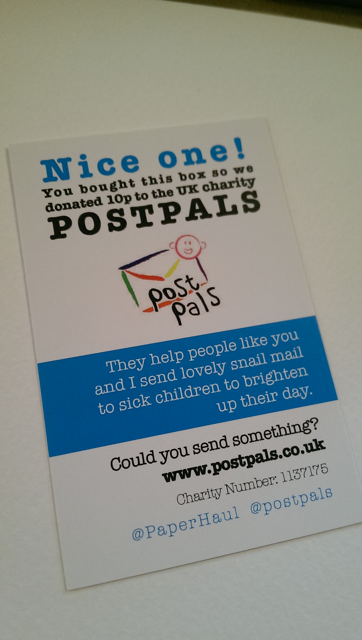 As always a percentage from each box goes to the charity Postpals, sending letters and cards to sick children .